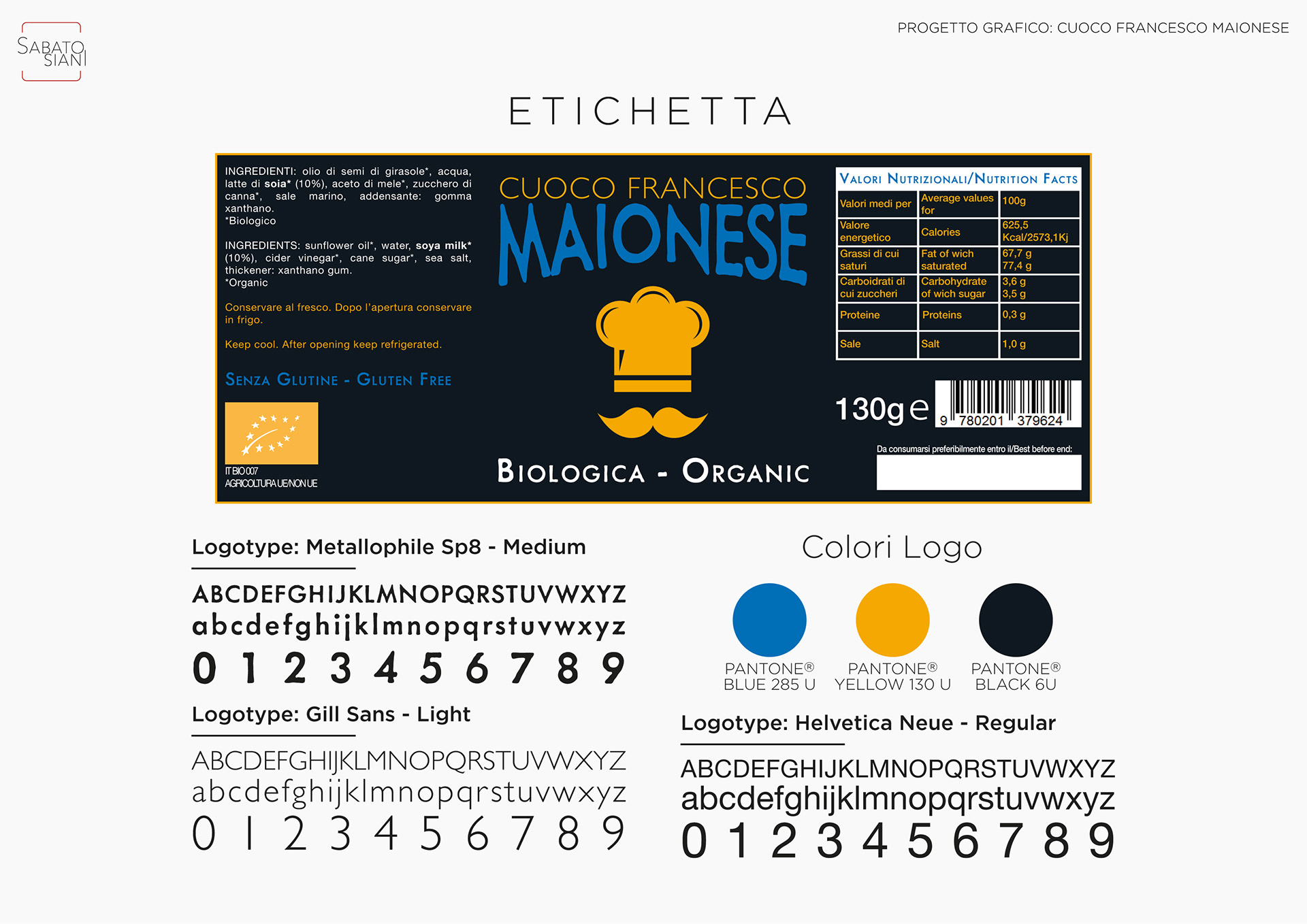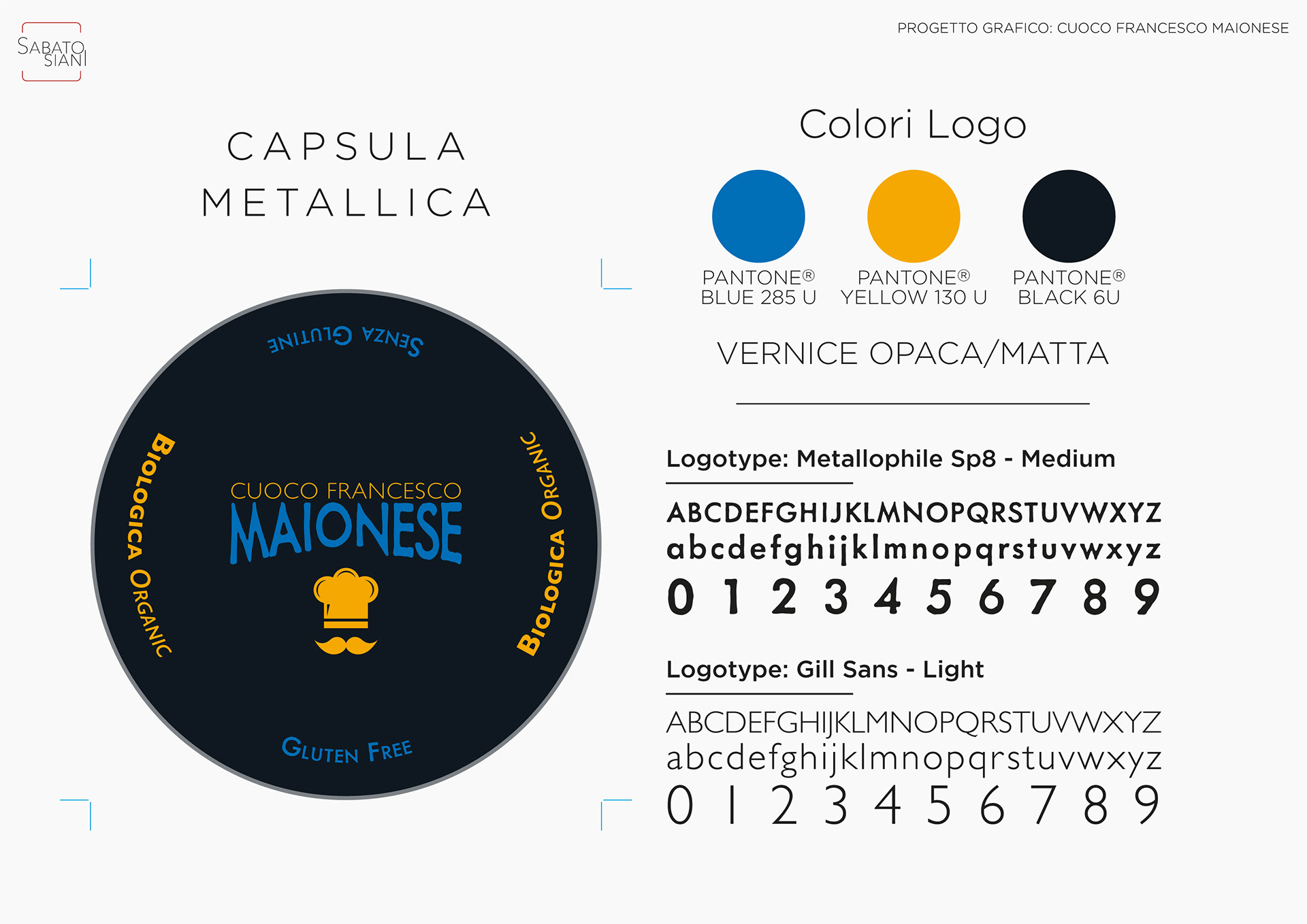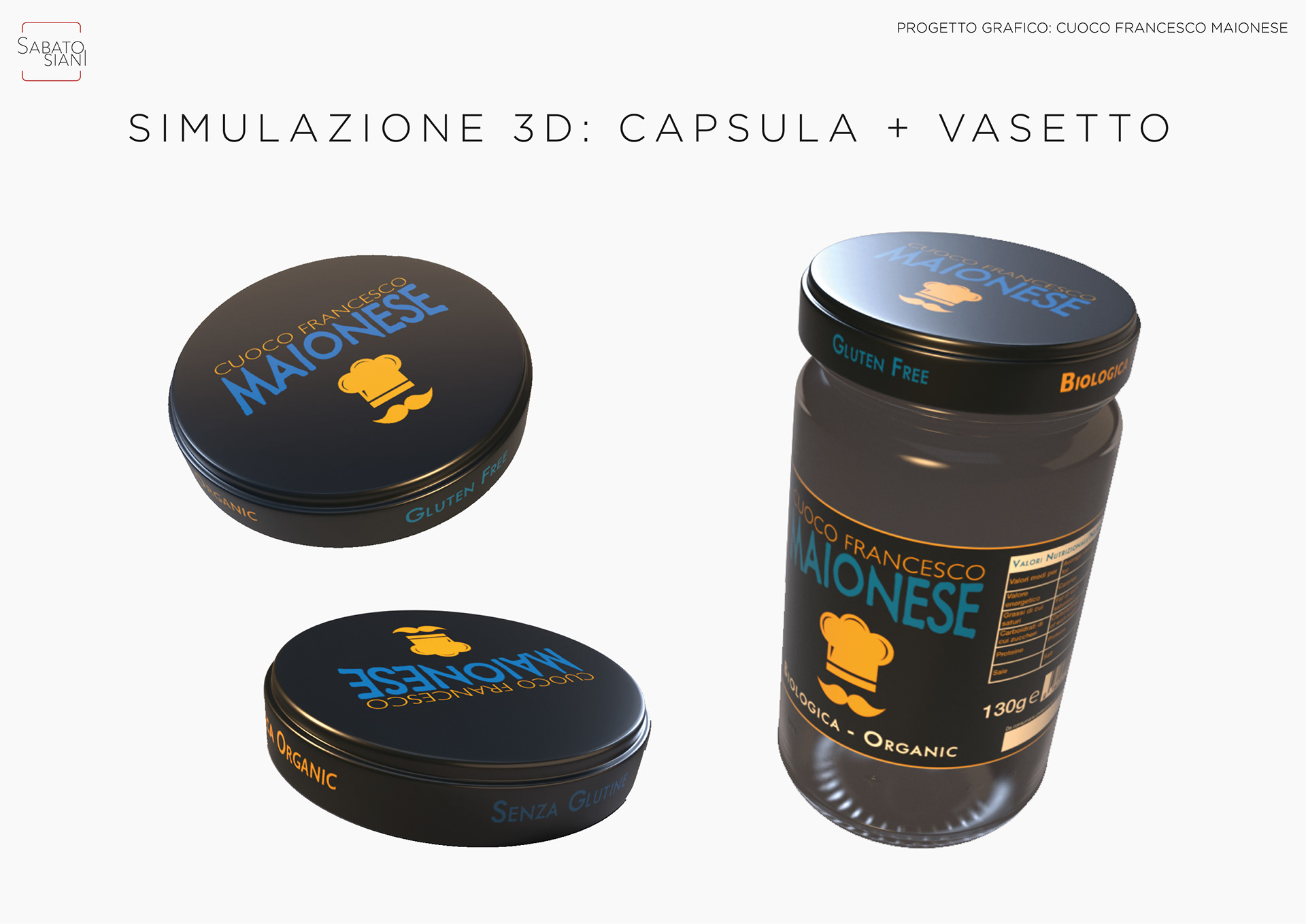 Creazione logo per un marchio di maionese, con impaginazione capsula ed etichetta.