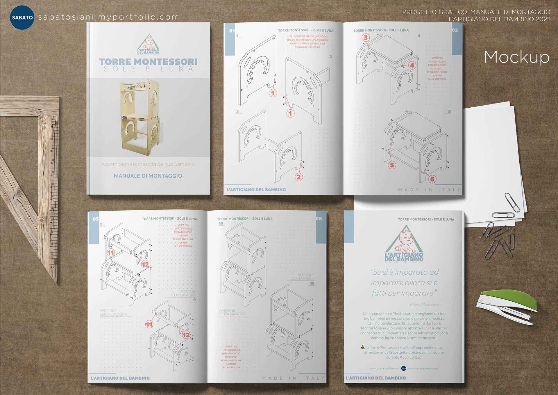 In questo progetto ho avuto la possibilità di realizzare un manuale di montaggio per una Torre Montessori, realizzata da L'Artigiano del Bambino.